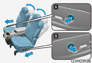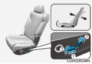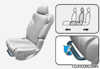 2열 컴포트 패키지를 적용하지 않을 경우 2열은 아래의 그림과 같이 수동으로 좌석 조절이 가능하다. 전 / 후 위치 조절 및 각도 조절은 좌석 아래 및 사이드에 위치한 레버를 당겨 이용한다.