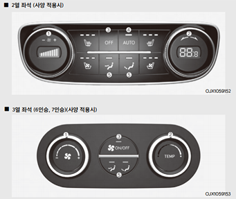 3존 공조 기능을 추가할 경우 2열 및 3열에서 온도 및 방향을 조절할 수 있다. 온도 조절, 바람 방향 조절, 풍량 조절(2열 좌석 제외)은 앞 좌석과 관계없이 독립적으로 작동된다.