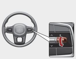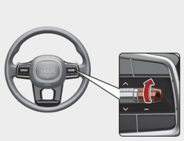 스마트 크루즈 컨트롤 기능을 켜고자 할 때는 스티어링 휠 오른쪽 편에 위치한 아래 사진과 같은 주행 보조 버튼을 누르면 된다. 스마트 크루즈 컨트롤 기능이 켜지면 현재 속도로 스마트 크루즈 컨트롤 속도가 설정된다.