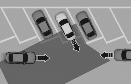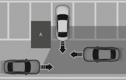 주변에서 다른 차량(옆으로 빠져나가는 차량, 후 측방 영역에서 주차 또는 출차하려는 차량, 회전하며 접근하는 차량 등)을 인식하면 후방 교차 충돌방지 보조가 작동하여 불필요하게 경고하거나 제동 할 수 있습니다. 항상 주변 상황을 확인하고 주의하여 운전해야 합니다.