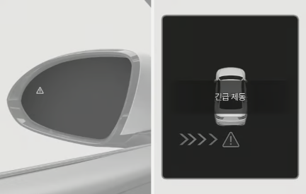 긴급 제동에 의한 정차 시 계기판 등에 경고문이 표시됩니다.