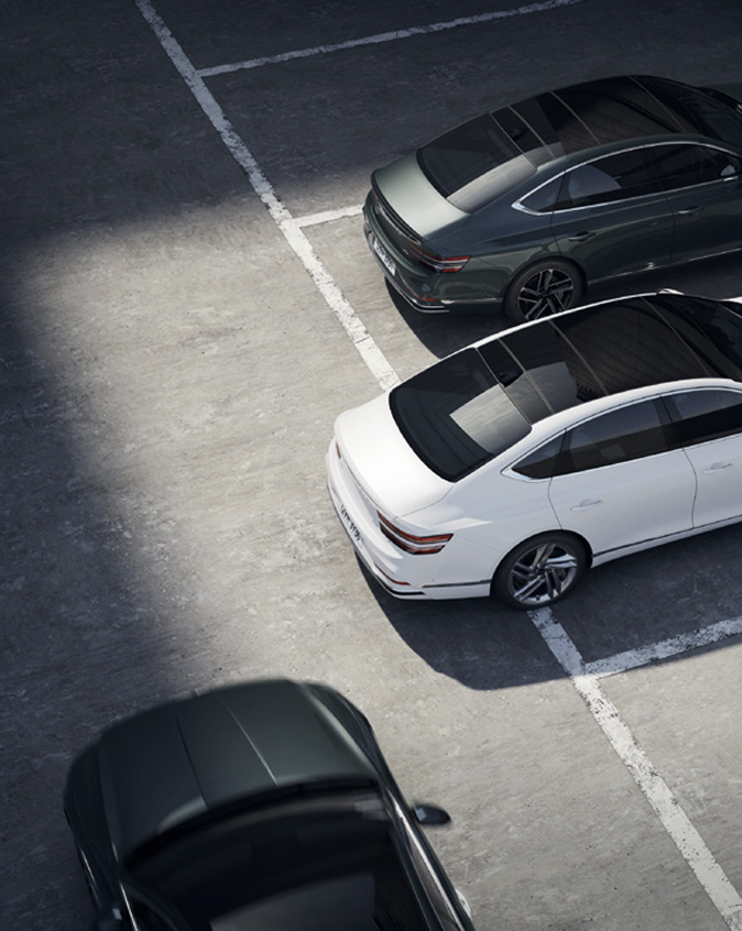 제네시스 G80 후방 교차 충돌방지 보조 기능이 기본 적용됩니다.