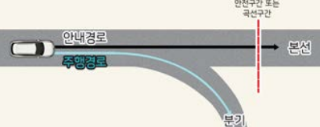 안내 경로와 주행 경로에 차이가 발생하면 전용도로 본선의 안전구간 또는 곡선구간 정보에 의해 고속도로 안전구간 자동 감속 또는 고속도로 곡선구간 자동감속 기능이 일시적으로 작동할 수 있다.