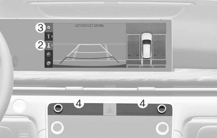 또는 설정을 통해 자동 켜짐을 설정해 두었다면 주차 시 서라운드 뷰 모니터 기능이 자동으로 작동합니다.