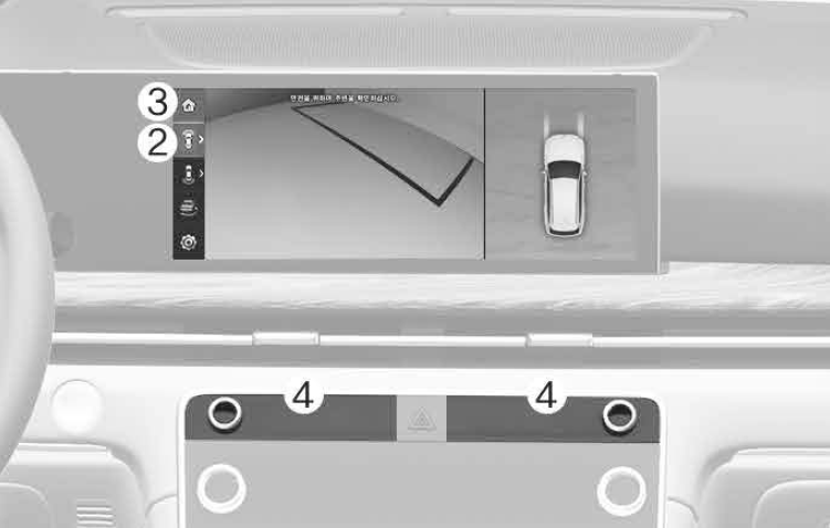 주차 / 뷰 버튼을 누르면 서라운드 뷰 모니터를 켜거나 끌 수 있습니다.