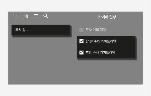 | 후방 주차 가이드 | 표시 정보의 후방 주차 가이드라인이 선택되어 있는 경우, 좌측 영상에 후방 주차 가이드라인이 표시됩니다. |