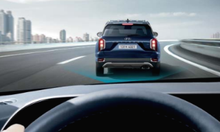 팰리세이드 후방 교차 충돌방지 보조는 후진 중 좌/우측에서 다가오는 차량과 충돌 위험이 감지되면 경고를 해주는 기능이다. 경고 후에도 충돌 위험이 높아지면 자동으로 제동을 돕는다.