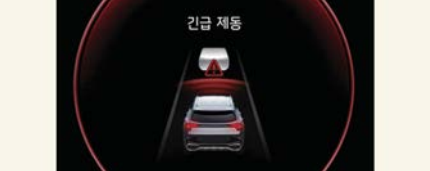 긴급 제동에 의한 정차 시 계기판 등에 경고문이 표시된다. 안전을 위해 즉시 브레이크 페 달을 밟고 주변 상황을 확인한다. 정차는 약 2초 동안 유지되며 이후 제동 제어가 종료되기 때문에 운전자는 브레이크를 밟고 주변 상황을 살핀 후에 주행하는 것이 좋다.