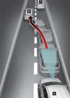 경고문과 경고음을 통해 긴급 제동을 알린다. 제동 제어가 작동하여 전방의 차량, 보행자 및 자전거 탑승자와의 충돌을 피할 수 있도록 돕는다. 긴급 제동은 차량에 대해서는 자차 속도가 약 5~60km/h의 경우, 보행자 및 자전거 탑승자에 대해서는 자차 속도가 약 5~60 km/h의 경우 작동한다.