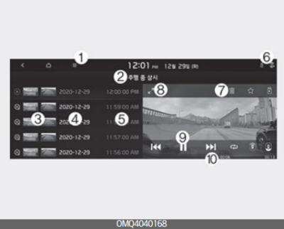 2. 저장 영상 목록: 상시 및 이벤트 녹화 영상 확인 (주행 또는 주차 중 상시, 이벤트 영상을 확 인할 수 있다.)