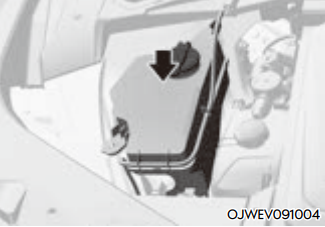 와셔액 부족 경고등이 켜지면 보충할 와셔액을 준비한다. 먼저, 후드를 열고 와셔액 탱크의 캡을 연다. 와셔액이 엔진룸에 흐르지 않게 조심하여 와셔액 탱크에 붓고 캡을 잠근다.