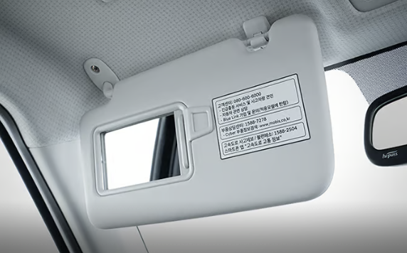 LED 선바이저 램프 : 선바이저 안쪽에 램프가 있어서, 거울을 사용할 때 주변을 밝게 비춰줍니다. 이 램프 덕분에 운전자는 언제든지 선바이저 거울을 사용할 때 밝은 램프 아래에서 용모를 정돈하거나 얼굴을 확인할 수 있습니다. 또한, LED 소재의 적용으로 에너지 효율이 높고 발열이 적습니다.