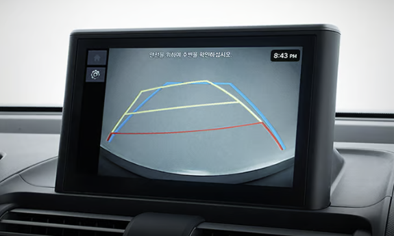 캐스퍼에 적용되는 후방카메라는 주차 시 후방 상황을 영상으로 보여줍니다. 광각의 후방 카메라를 이용하여 후방 영상 및 고정 / 조향 가이드라인을 운전자에게 표시합니다.
