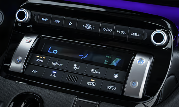 풀오토 에어컨은 운전자가 설정한 온도로 실내 온도를 자동으로 유지하여 쾌적한 실내환경을 유지합니다. 온도 조절과 풍량 조절은 버튼을 이용하여 진행할 수 있습니다.