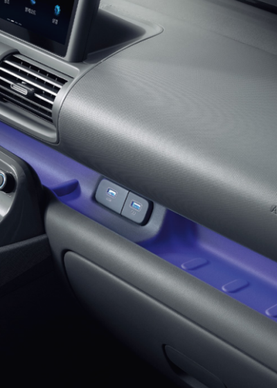캐스퍼 내장에 메탈페인트 인사이드 도어 핸들이 적용됩니다. 메탈페인트 소재의 내장재가 적용되어 내구성이 높아졌으며 디자인적으로도 완성도가 높습니다.