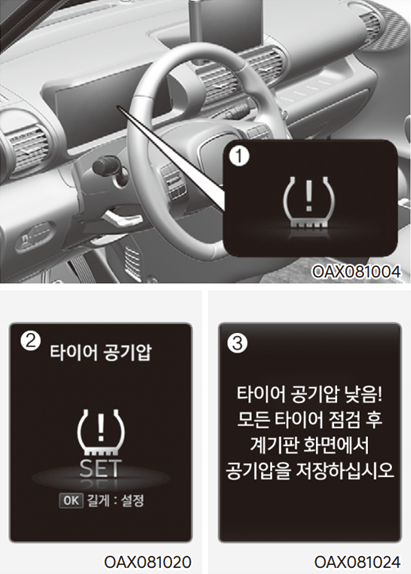 바퀴의 회전수 정보를 운전석으로 보내 실시간으로 타이어의 압력 상태를 점금합니다. 공기압이 낮아질 경우 경고 메시지를 클러스터에 표시하여 운전자가 바로 대응할 수 있도록 돕습니다.