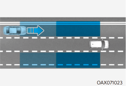 운전자가 차로를 변경을 위해 방향지시등을 켤 때, 뒤에서 오는 차량과의 충돌을 방지하기 위해 만들어진 안전 기능입니다. 운전자가 차로를 바꾸려고 할 때 뒤쪽에서 차가 다가오고 있다면 경고를 해줍니다.