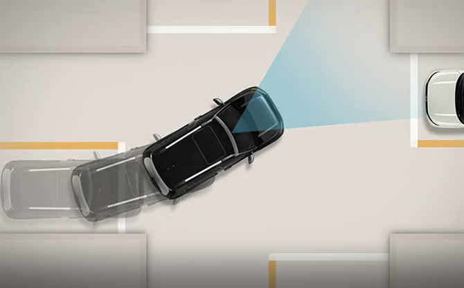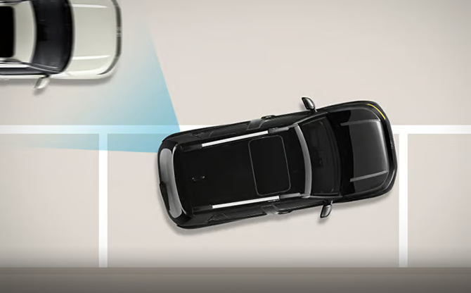 출차 시 후측방 충돌방지 보조 기능이 작동합니다. 평행 주차 상태에서 차량 출차 시 후측방에서 차량이 진입하고 있을 때 차량을 자동으로 제동하여 안전사고를 예방해 줍니다.
