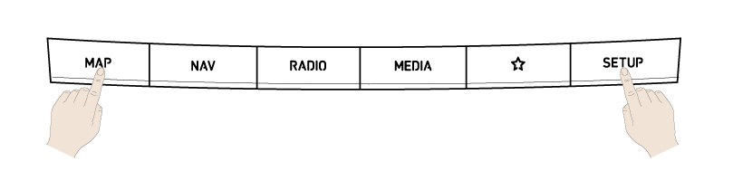 인포테인먼트의 예상치 못한 오류나 문제가 발생했을 경우 시스템을 재설정할 수 있습니다. 위 그림과 같이 MAP 버튼과 SETUP 버튼을 동시에 5초간 누르면 시스템이 재시작됩니다.