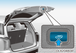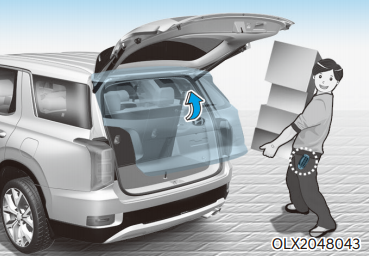 스마트키를 휴대하고 테일게이트 뒤쪽 감지 영역(약 50~100cm)으로 접근하면 비상 경고등 및 경고음이 작동하면서 테일게이트가 위쪽으로 열린다.