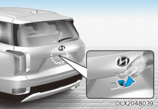 테일게이트가 닫힌 상태에서 스마트 키를 휴대하고 파워 테일게이트 핸들 스위치를 누르면 경고음과 함께 테일게이트가 열린다.