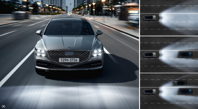 지능형 헤드램프는 상향등 상태를 유지하여 운전자의 시야를 안전하게 확보하는 동시에, 마주 오는 전방 차량 영역의 빛을 부분적으로 차단해 대향차 운전자의 눈부심을 막아준다. 선행 차량 영역에도 동일하게 작동하며, 별도의 헤드램프 조작 없이도 시야 확보가 유리하기 때문에 야간 운전이 더욱 용이하다.