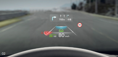 제네시스 G80 헤드업 디스플레이 옵션은 130만 원으로 주행속도, 내비게이션 정보 등은 물론, 운전자 보조 시스템의 주요 정보들과 갈림길 정보 등을 표시한다. 12인치 와이드의 고화질 디스플레이로 주·야간 모두 시인성이 뛰어나다. 헤드업 디스플레이 옵션의 자세한 내용은 다음 글을 통해 확인 가능하다.