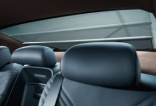 뒷면 전동식 커튼은 뒷좌석으로 들어오는 빛을 차단하고자 할 때 사용한다. 앞좌석, 뒷좌석에서 버튼으로 커튼을 조작할 수 있다. 후진 시 뒷좌석 도어 커튼은 자동으로 열린다.