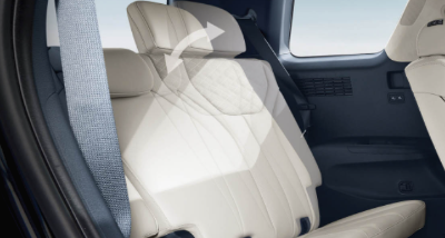 3열 파워 폴딩 시트는 3열 시트와 러기지 사이드에 적용된 전자식 스위치로 시트 폴딩 및 리클라이닝 하여 화물 적재 시 편리함을 제공한다.