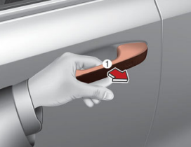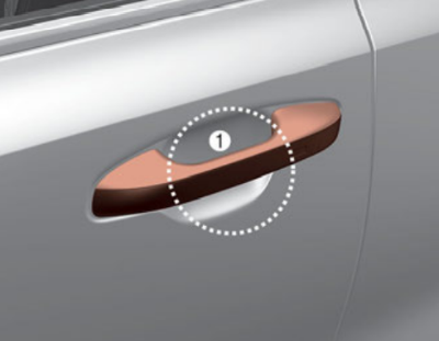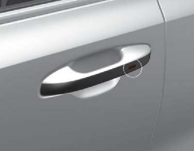 스마트폰 NFC 안테나 또는 NFC 카드를 운전석 또는 동승석 도어 핸들 인증 패드 중앙에 2초 이상 접촉하면 도어가 잠금 또는 잠금 해제된다.