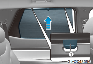 뒷좌석 수동식 도어 커튼은 뒷좌석 유리를 통해 들어오는 외부 광선을 차단하고자 할 때 사용할 수 있다. 커튼 고리를 잡고 올려 장착된 양쪽 후크에 커튼을 건다.