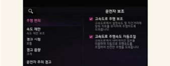 시동 ON 상태에서 인포테인먼트 시스템의 설정 → 운전자 보조 → 주행 편의를 차례로 선택하면, 각 기능의 사용 여부를 설정할 수 있다. 고속도로 주행 보조를 선택하면 전방 차량과의 거리와 설정속도를 유지하며 차로 중앙을 주행하도록 돕는다.