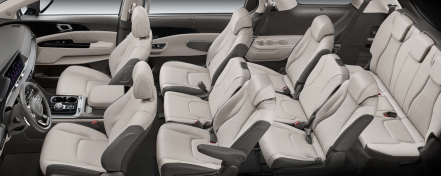 카니발 프레스티지 트림 시트는 인조 가죽 시트, 1열 열선시트, 1열 통풍시트, 운전석 전동식 허리지지대, 2열 열선시트, 2열 독립시트(전/후 슬라이딩, 리클라이닝, 워크인), 3열 독립시트(쿠션 팁업&전/후 슬라이딩, 리클라이닝), 4열 팝업 싱킹 시트가 기본 적용된다.