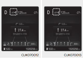 표시된 제한속도보다 높은 속도로 주행할 경우 제한 속도를 적색으로 표시한다.