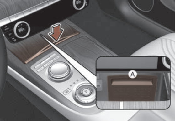 등록된 디지털 카드 키를 실내 인증 패드(무선 충전 패드) 중앙에 올려놓은 후 브레이크 페달을 밟고 시동 버튼을 눌러 시동을 건다.
