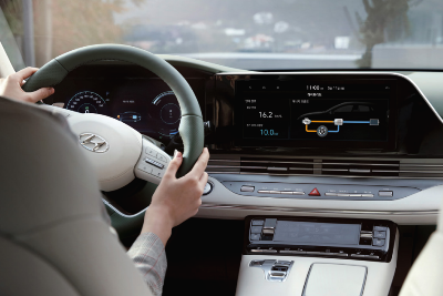 2022 그랜저 하이브리드 인포테인먼트는 12.3인치 내비게이션(블루링크, 폰 프로젝션, 현대 카페이), 일반 오디오 시스템(8 스피커, 라디오, MP3, 블루투스 핸즈프리)이 추가 적용된다.