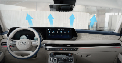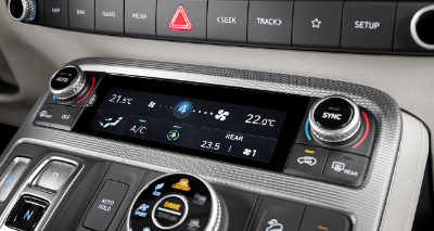 * 전후석 통합 터치 공조 컨트롤러 : 터치식으로 2열 공조 제어까지 가능하여 편리한 터치 타입 공조 패널에 공기질 센서, 마이크로 에어 필터, 운전석 공조 연동 자동 제어 등의 공기청정 모드가 적용되어 실내 미세먼지를 획기적으로 저감 하며 쾌적한 실내 환경을 제공합니다.