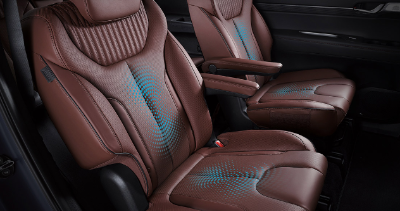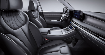 2022 팰리세이드 프레스티지 트림 시트는 천연가죽 시트(블랙), 운전석 10 way 전동시트(쿠션익스텐션 기능 포함), 운전석 4 way 럼버 서포트, 2열 통풍시트가 추가 적용된다.