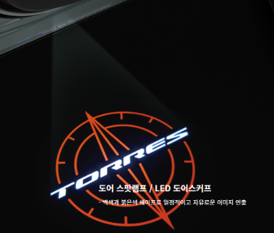 2022 토레스는 T7을 선택하면 도어 스팟 램프, LED 도어스커프 기능이 적용되었지만, 2024 토레스는 최상위 블랙 에디션 트림에 도어 스팟 램프, LED 도어 스커프 기능이 적용됩니다.