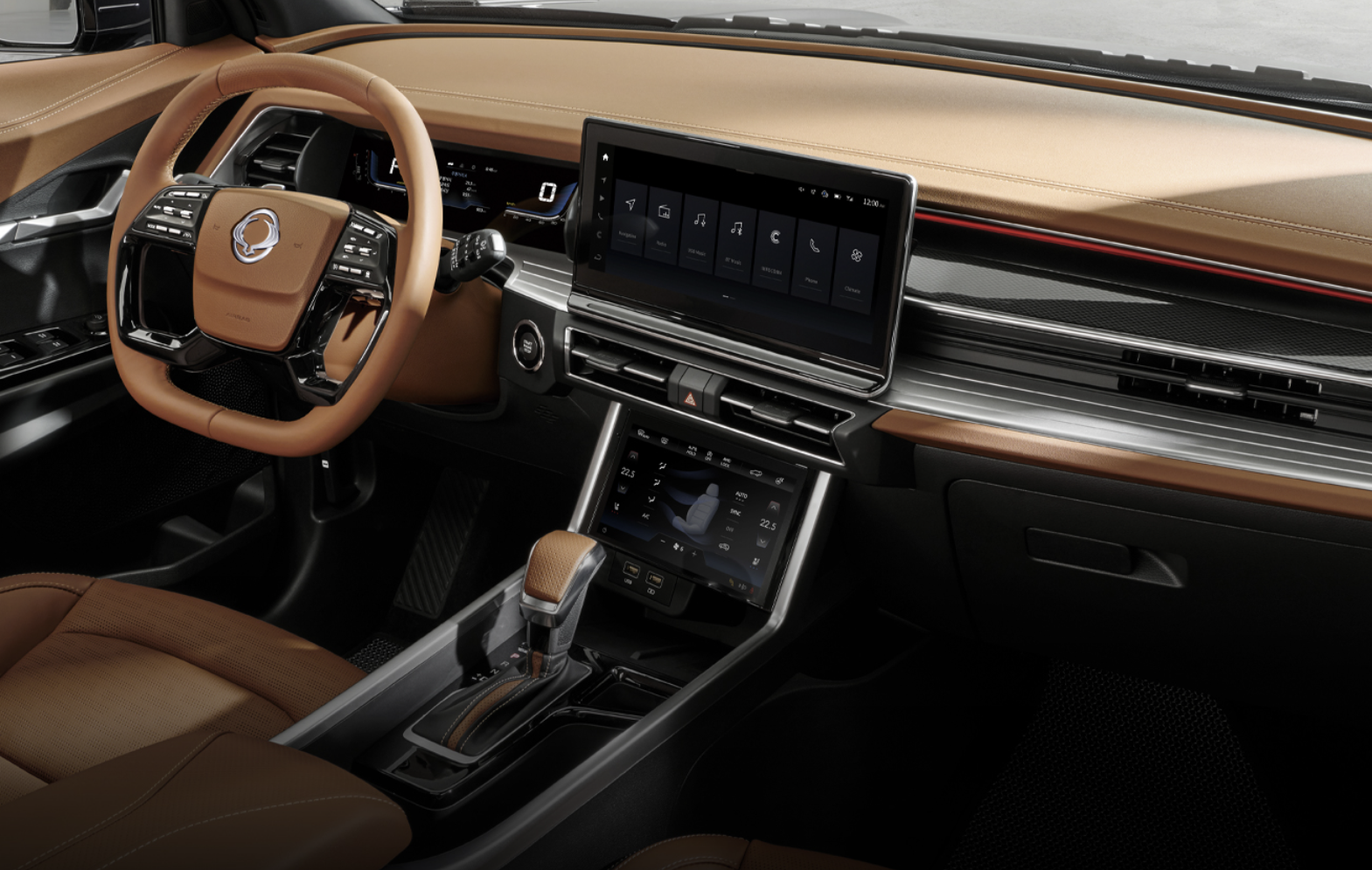 2024 토레스 T5는 9인치 스마트 미러링 패키지, 6 스피커, 스티어링 휠 오디오 리모컨, 블루투스 핸즈프리 기능이 기본 적용됩니다.