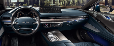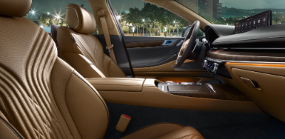 제네시스 G80 스탠다드 디자인은 심플한 디자인의 천연 가죽 시트, 고광택 하이그로시 내장재가 크래쉬 패드, 센터 콘솔, 도어 트림에 적용된다.