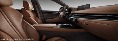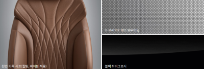 또한 스웨이드 내장재가 헤드라이닝, 필라 트림에 적용되며, 인조 실크 카매트로 고급스러움을 한층 더한다. 센터콘솔 암레스트, 스티어링 휠 혼 커버에는 프라임 나파 가죽 내장재가, 크래쉬 패드, 도어 센터 트림에는 인조가죽 내장재가 적용된다.
