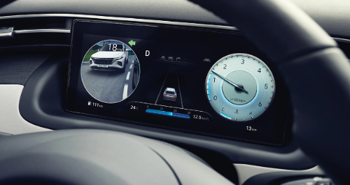 * 후측방 모니터 : 방향지시등 스위치 조작 시 아웃사이드 미러 하단에 장착된 카메라를 통해 좌/우 후측방 영상이 클러스터 화면에 표시된다.