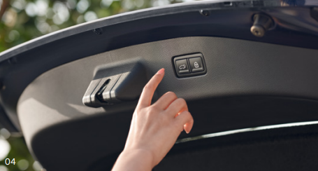 * 스마트 파워 테일게이트 : 별도의 조작 없이 스마트 키를 소지하고 차량 후방에 3초간 머물면 테일게이트가 자동으로 열려 편리하게 짐을 싣고 내릴 수 있다. AVN 내의 개인 맞춤 높이 설정 기능을 통해 사용자의 키와 사용 스타일에 맞는 열림 높이를 설정할 수 있어 더욱 개인 화된 편의성을 제공한다.