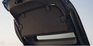 * 러기지 커버링 쉘프 : 러기지 공간 내부의 수납품들이 외부에서 보이지 않도록 깔끔하게 커버해주는 역할을 할 뿐만 아니라 여름철 자외선 으로 인한 손상을 방지한다. 뒷좌석 승객의 프라이버시까지 보호한다.