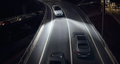 지능형 헤드램프는 밤에 운전할 때 전조등의 상향등이 켜져 운전자의 시야 확보를 해줍니다. 또한, 앞 유리창에 장작 된 전방 카메라를 이용하여 마주 오는 차량 또는 선행 차량이 감지되면 자동으로 해당 상향등의 LED가 부분적으로 꺼진다.