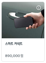 스마트 커넥트 옵션은 89만 원으로 기아 디지털 키 2, 터치타입 아웃사이드 도어핸들, 빌트인 캠을 추가할 수 있습니다.
