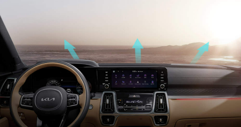 일사량 감지 센서가 크래시 패드 상단에 장착되어 있다. AUTO를 선택하면 이 센서가 일사량을 감지하여 자동으로 차 안의 온도를 조절한다. 일사량 감지 센서 위에 물건이 놓여 있으면 일사량 감지할 수 없기 대문에 물건을 올려놓지 말아야 한다.