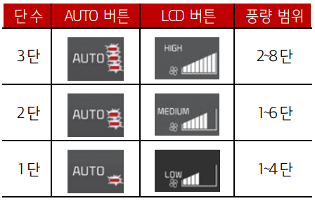 엔진에 시동을 건 상태에서 전자동 조절 버튼 (AUTO)을 눌러 풍량 세기를 1~3단 중 원하는 풍량으로 설정할 수 있다. 차 안을 쾌적한 온도로 유지하기 위해서 계절에 관계없이 AUTO 사용을 권장한다. 통상 온도는 22도 정도로 설정하는 것이 좋다.