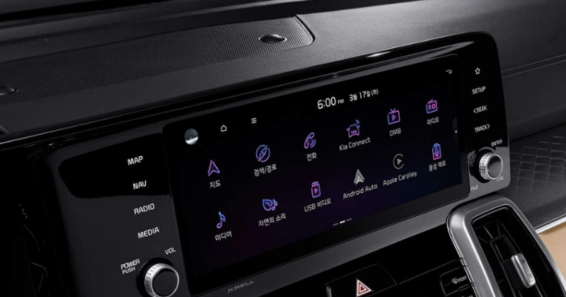 10.25인치 와이드 디스플레이에 지도 및 각종 차량 정보를 한눈에 알기 쉽도록 사용자에게 제공하며, 원격 제어 서비스, 안전 보안 서비스 및 차량 진단 서비스 등이 제공되는 첨단 커넥티드 카 서비스 Kia Connect를 이용하실 수 있다. 위젯과 분할 화면을 활용하여 더욱 편리한 사용자 조작이 가능하다.